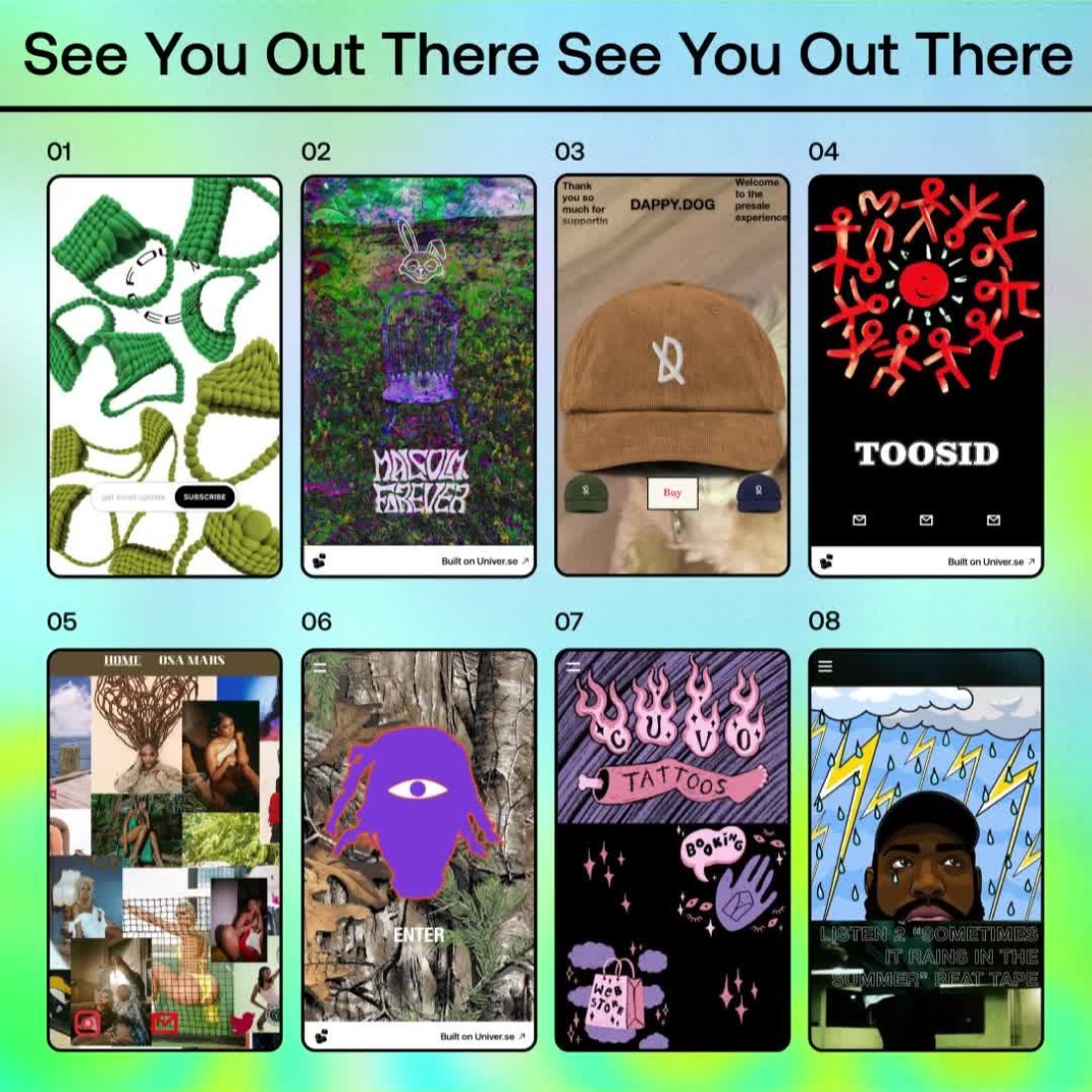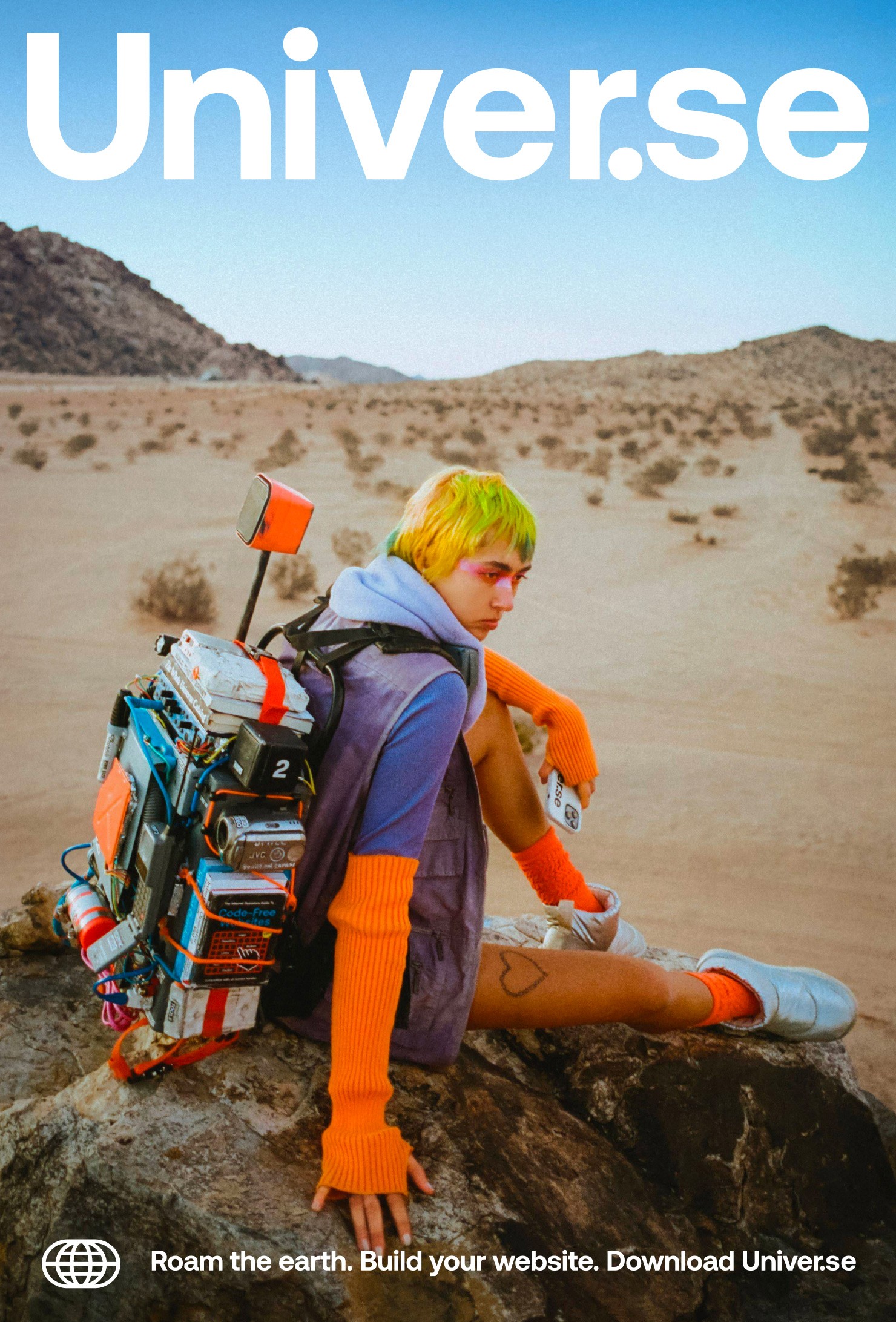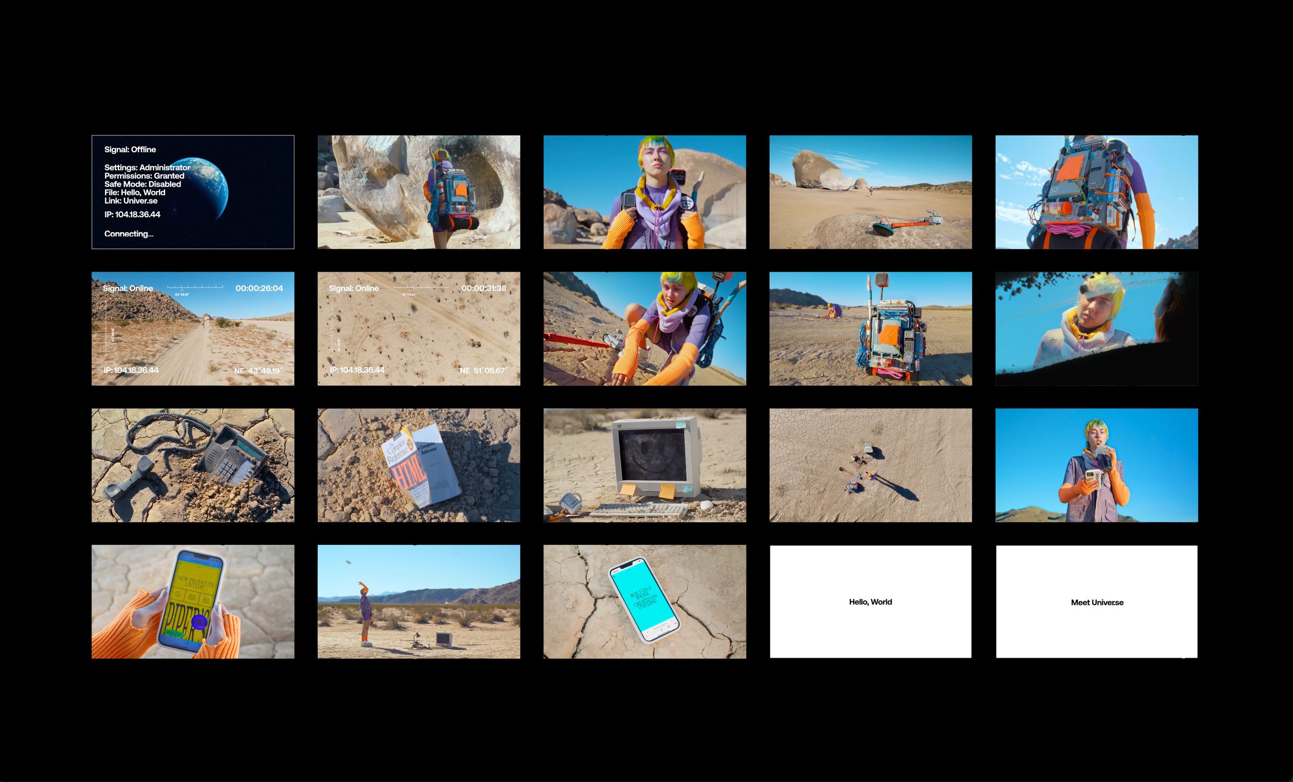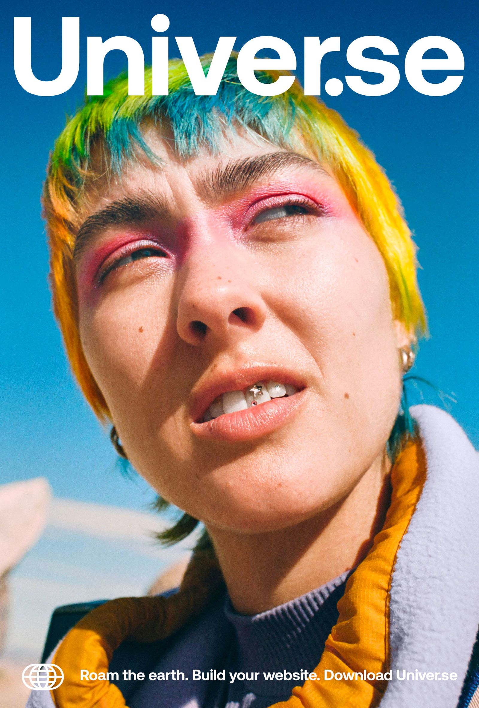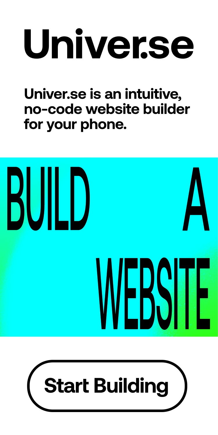 Universe lets anyone build a website from their phone. In a category defined by generic, over-polished aesthetics, the brand needed to be a deliberate departure from every competitor in the space. As Head of Brand Design, I built the foundation from the ground up — strategy, story, identity, visual language, motion, video and digital experience — unified under a distinct creative vision called TechnoPunk.