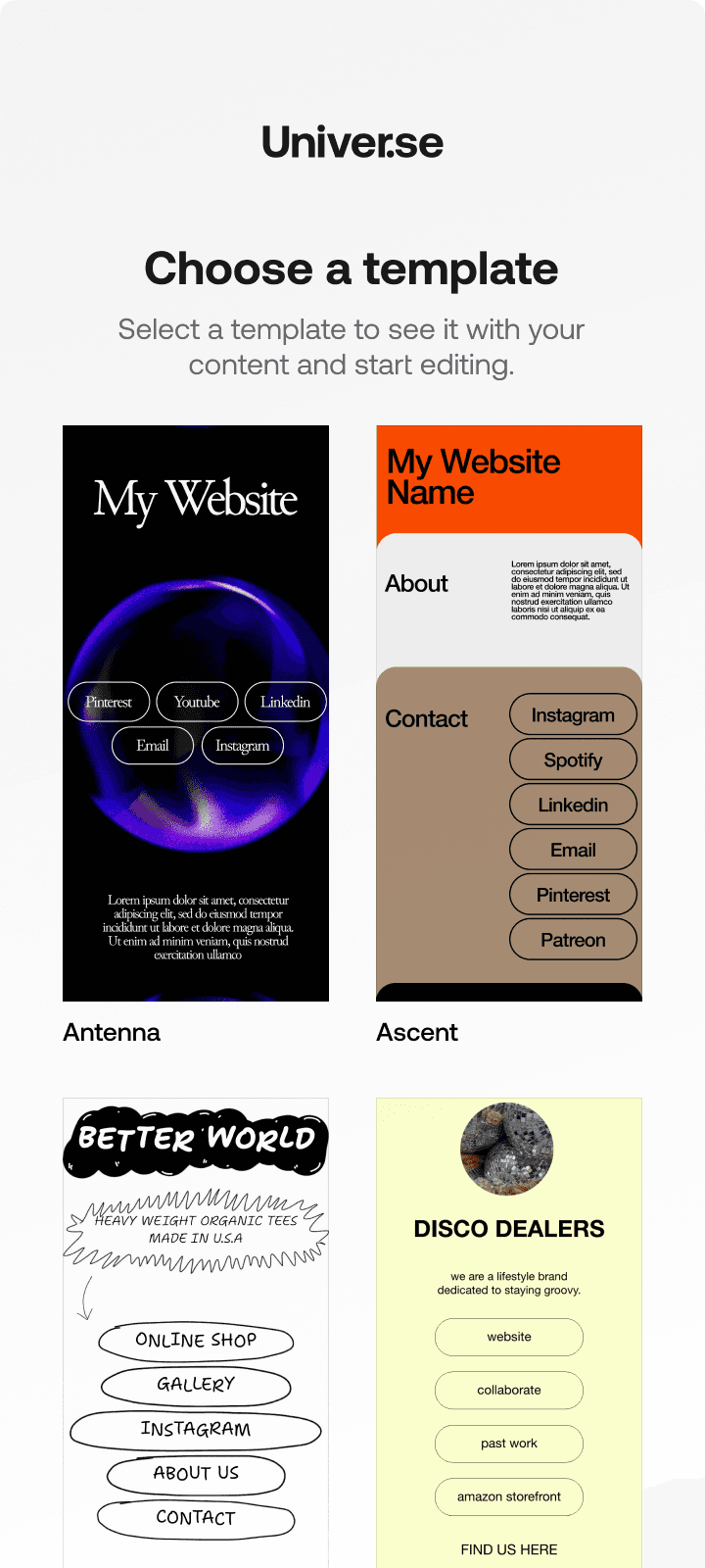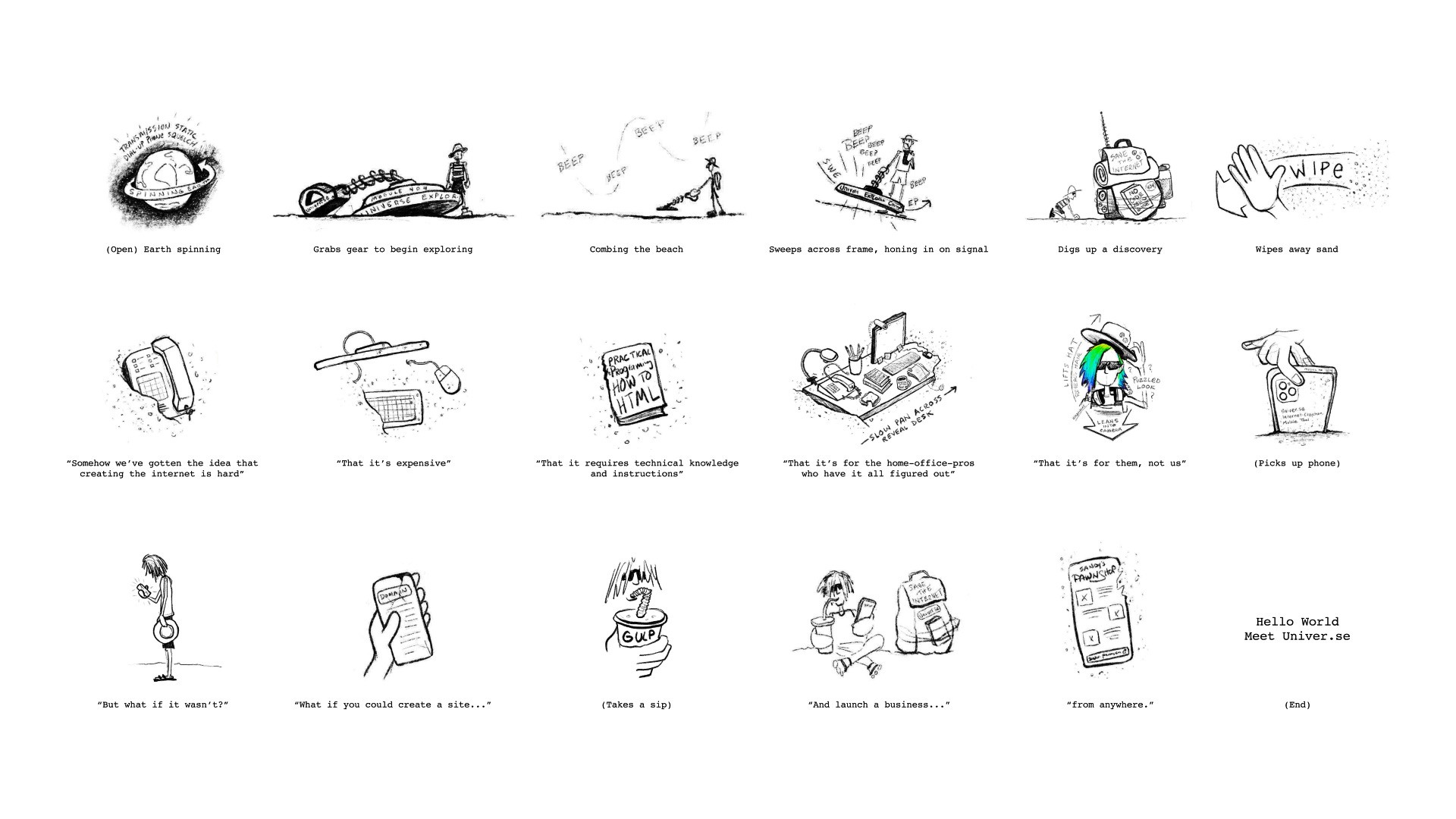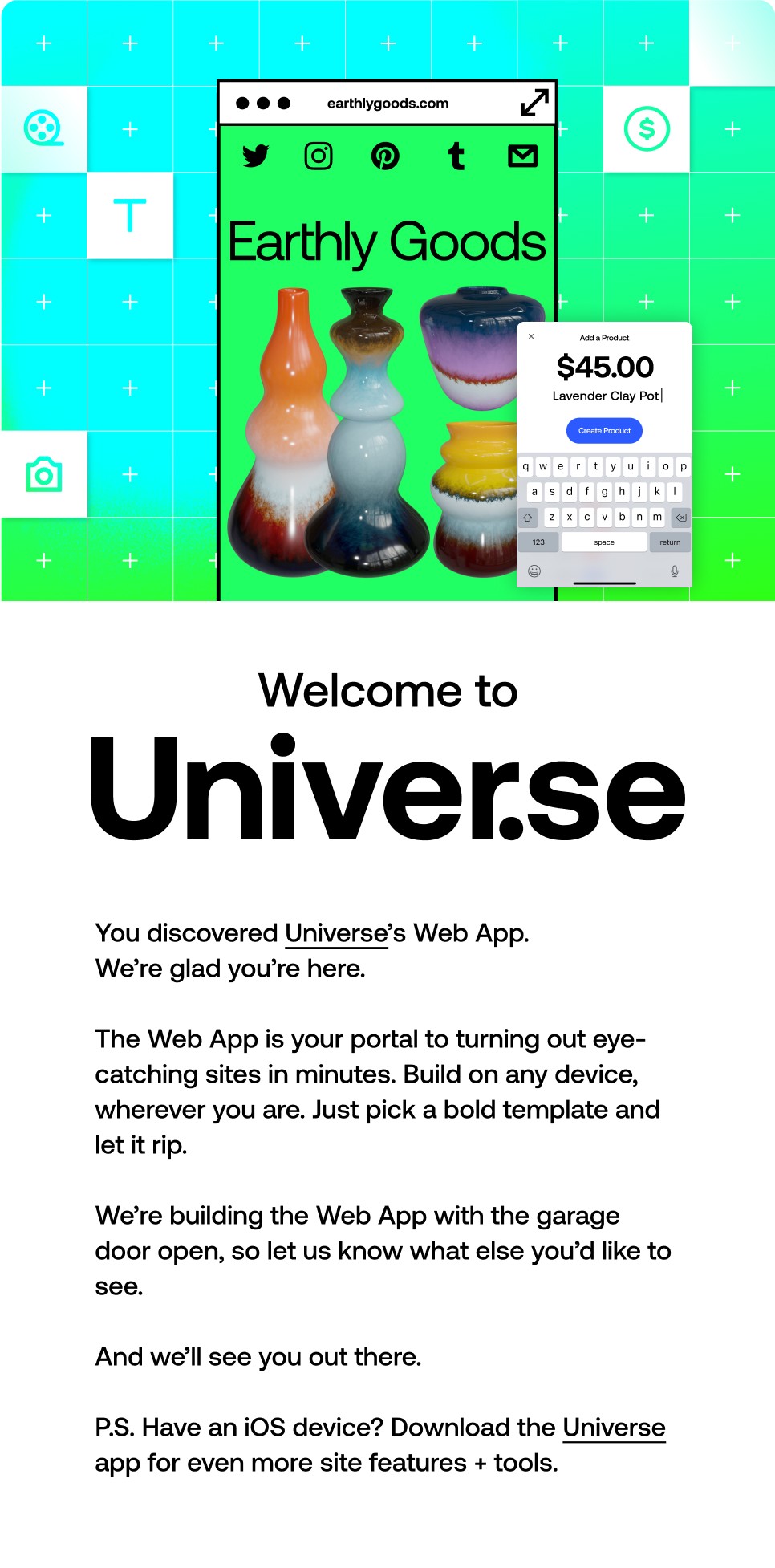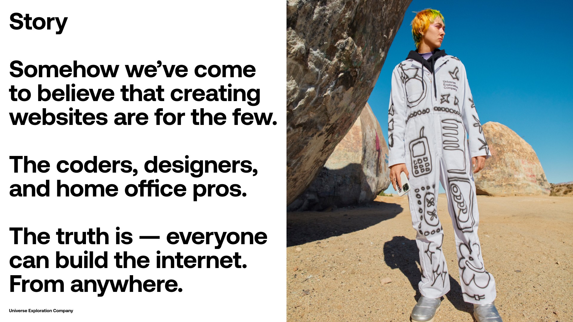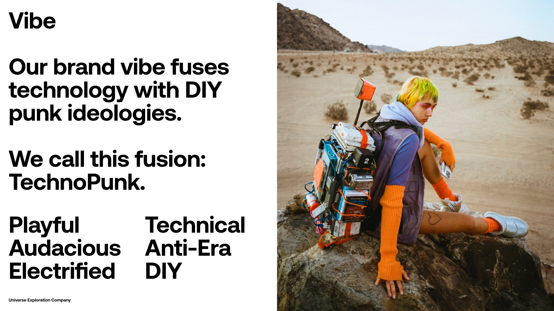 Universe lets anyone build a website from their phone. In a category defined by generic, over-polished aesthetics, the brand needed to be a deliberate departure from every competitor in the space. As Head of Brand Design, I built the foundation from the ground up — strategy, story, identity, visual language, motion, video and digital experience — unified under a distinct creative vision called TechnoPunk.